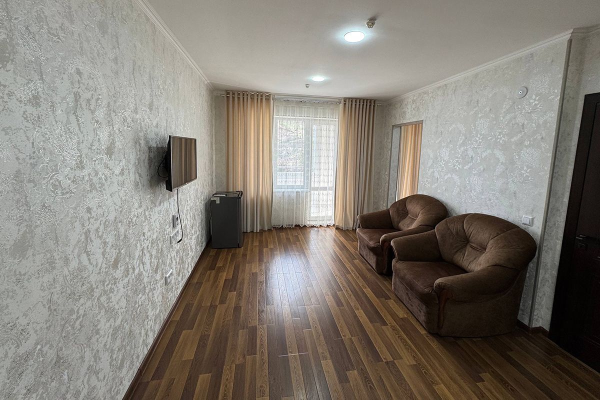 Двухкомнатный номер. Состоит из гостиной, спальни и ванной комнаты. Номер с балконом.