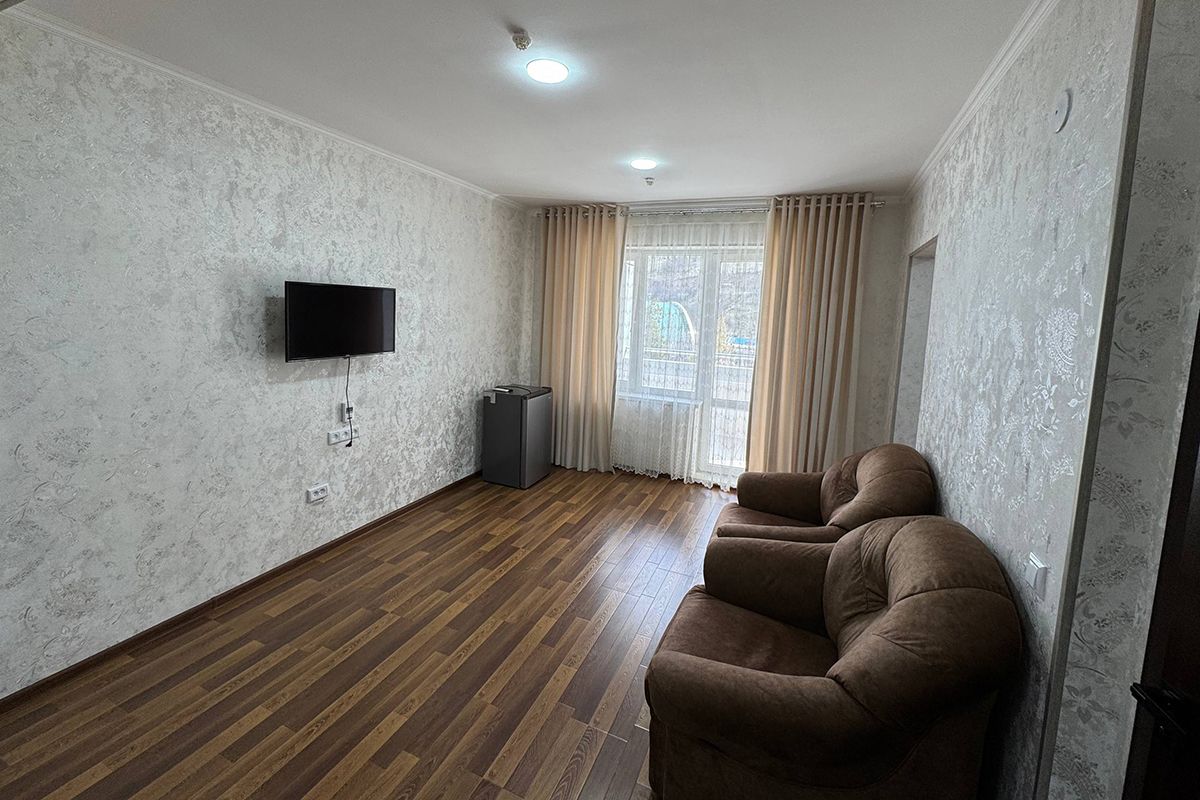 Однокомнатный номер. Состоит из прихожей, спальни и ванной комнаты. Номер с балконом.